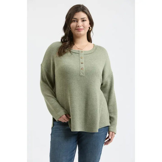 Waffle Knit Henley Long Sleeve Knit Top